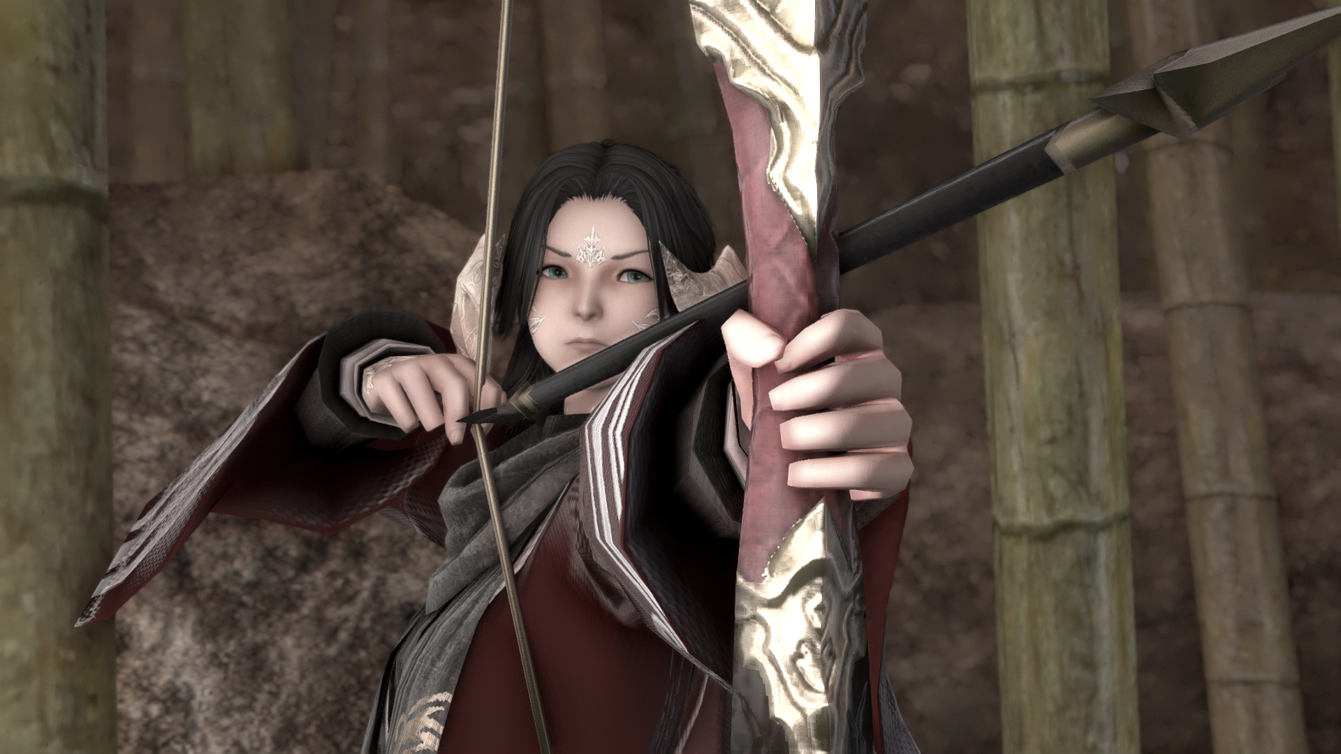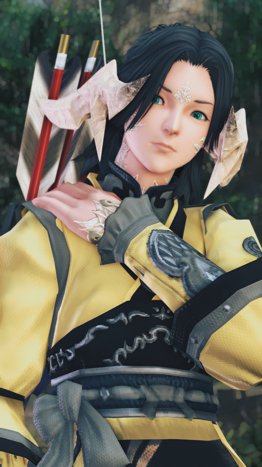 ..PRETTY-BOY BOWMAN... Born to the Adagumo clan in the village of Kitakata, just north of the city of Shigin in the Fanged Crescent, Taisei's family was unremarkable amongst the local populace, tending the fertile rice and vegetable fields near the main river. Taisei himself, however, was anything but normal, gaining a reputation even from a young age as a particularly beautiful boy. Because of this, he was often doted on, allowed to slack off, and skipped any sort of studies or fieldwork. His one actual passion was the bow...DUTIFUL SERVICE IN AZIM'S NAME... Taisei's acumen with the bow attracted the attention of many independent armies, seeking to shore up their forces in the seeming eventuality of a more widespread conflict against the invading Garlean Empire. He selected Azim's Blessed Bow and Blade Army, an army with a more religious bent, though, in effect, this was a cover, helping them to perform more nefarious deeds without the reprisals common against more mundane armies. This wasn't a problem for Taisei. Actually, he enjoyed it...WORLD'S WORST GANGSTER... Taisei's company would eventually be dissolved, a scandal involving the defense of a monastery gone wrong raising the ire of a powerful religious figure. As words of the crimes of the company spread, Taisei would be implicated, finding himself a persona non grata in most of the Crescent. Joining forces with his new best friend, Fumitake, a scribe, he departed his lifelong home, now seeking to make a name for himself in the world's first non-misogynist gang.